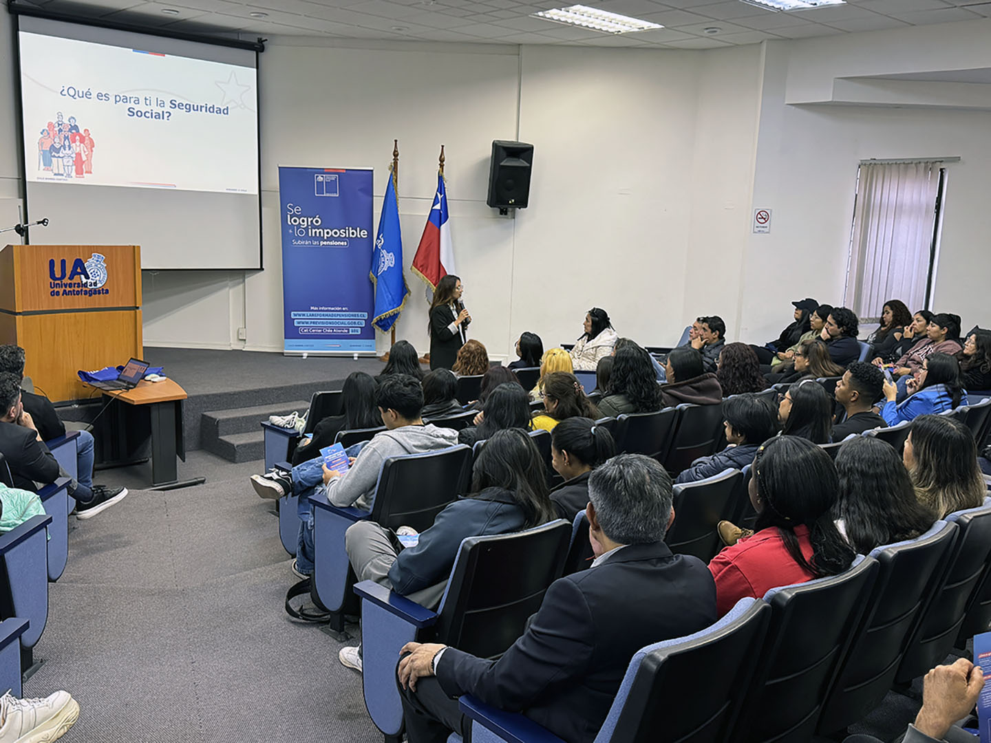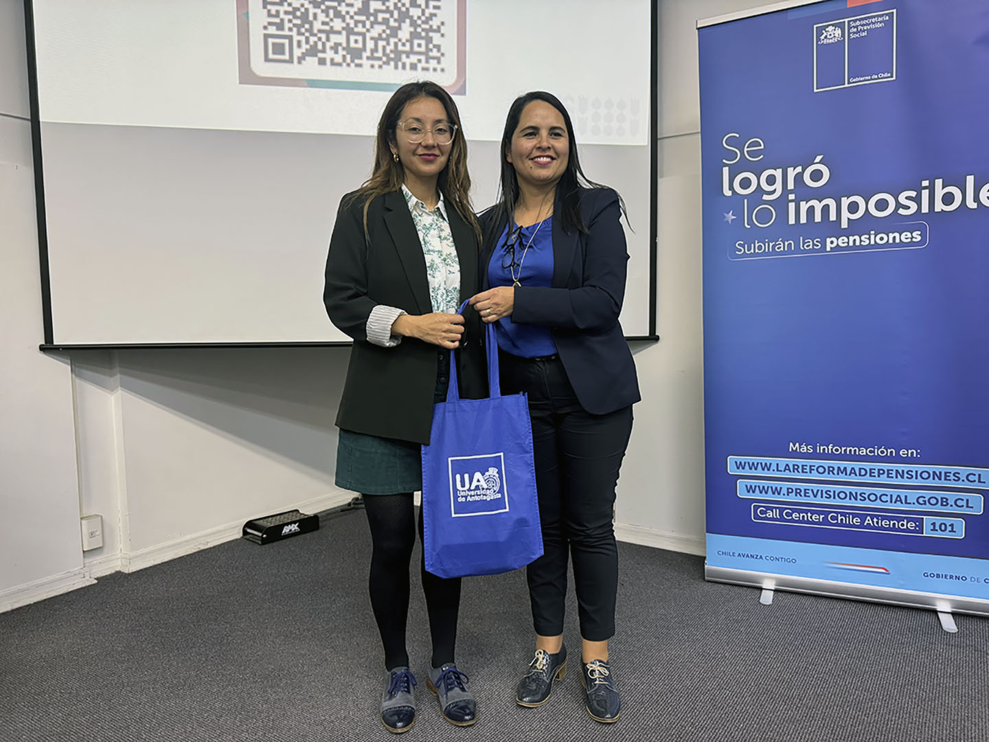El Centro de Carreras Técnicas de la Universidad de Antofagasta, en conjunto con la Seremi del Trabajo y Previsión Social de Antofagasta, Camila Cortés Ruiz, desarrolló el pasado jueves 25 de septiembre la Charla: Reforma de Pensiones, instancia que permitió a estudiantes y egresados/as acceder a información de primera fuente sobre los cambios e implicancias del sistema previsional chileno.